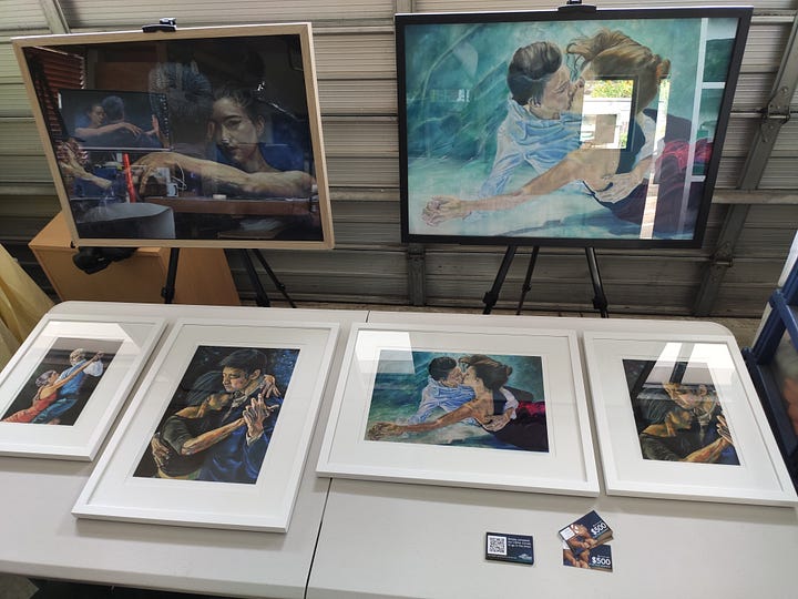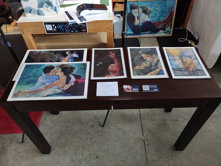 However… my heart burns to keep going… to talk with other artists who came to talk shop with me… the young woman who looked at the colours used in painting a dancer’s arm and who said “this just makes so much sense to me” the people who came from significant distances away to check out my art and talk to me about it… that is satisfaction I rarely got in my day job.